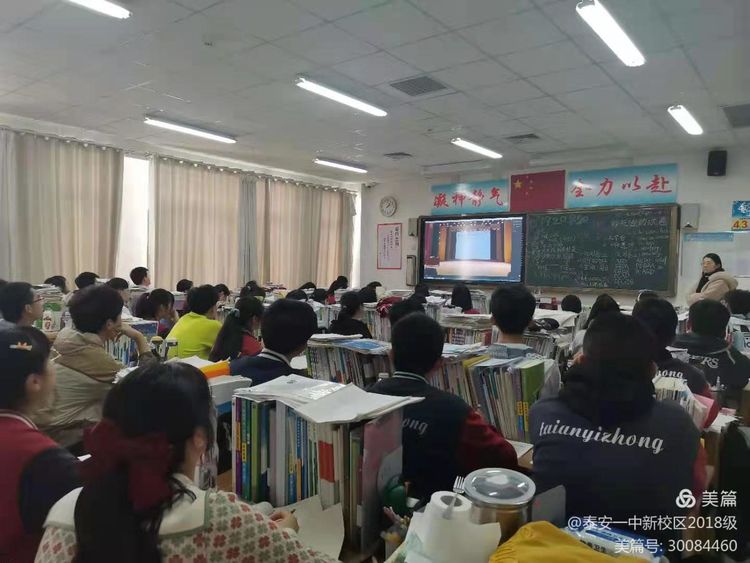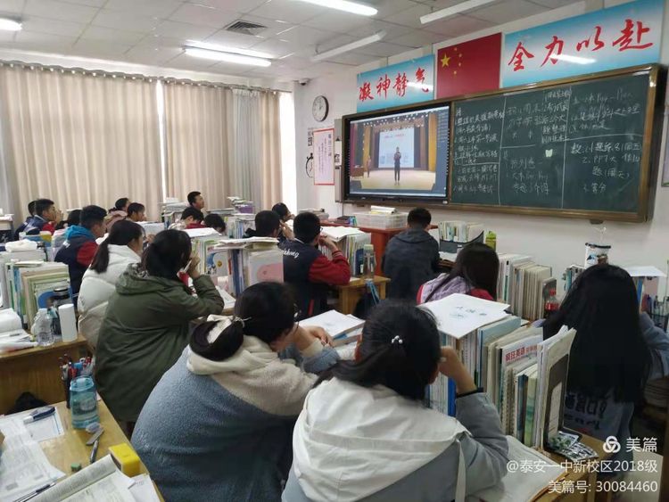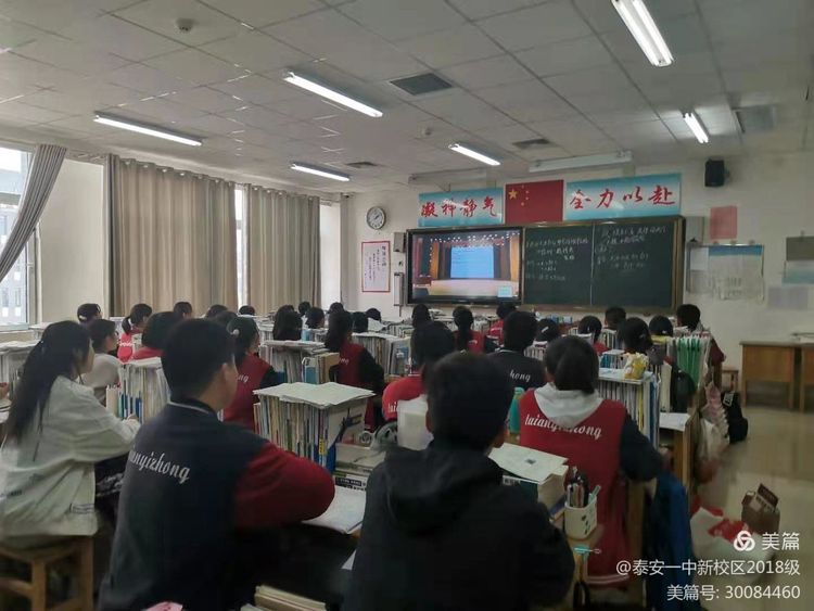 泰安一中党委书记靳启华、2018级级部主任刘树乾及高三部分班主任和同学现场参加了这次报告会,其余班主任和同学在教室通过视频直播形式,参与了这场有趣且有益的报告会。