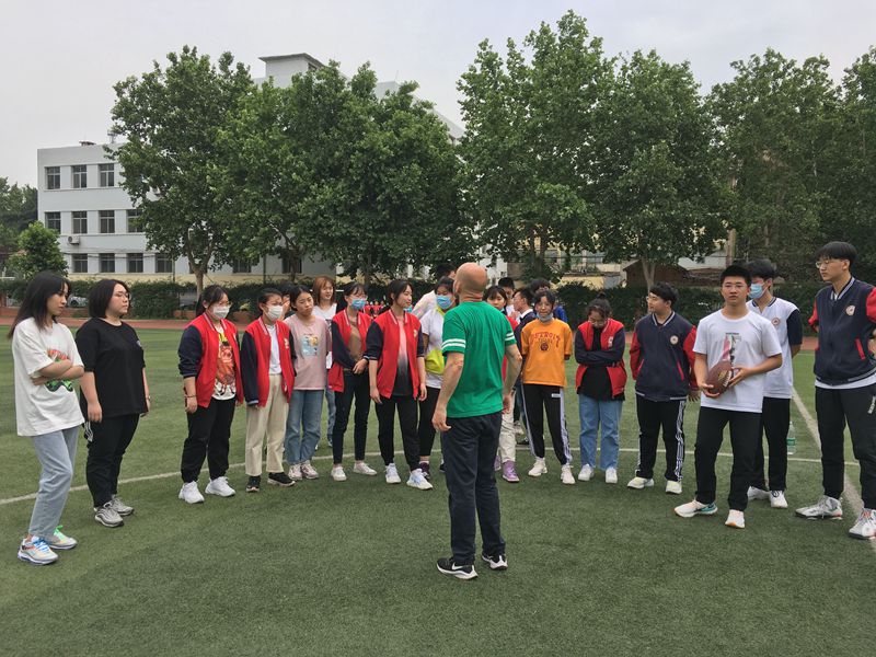 橄榄球是美国十分流行的一项体育运动,又名“美式足球”(American football,但对于中国学生来说却比较陌生。为了加深对橄榄球运动的了解,初步学习关于橄榄球运动的知识,也为了丰富中美班学生的课余生活,国际部美籍外教Constantine老师主动请缨, 担负起了教授橄榄球的任务。每逢体育课或课余时间,Constantine老师便组织2019级中美班学生到学校操场学习有关橄榄球的基本知识、基本战术以及注意事项等,学生从一脸茫然、一招一式到逐步了解,再到熟练掌握,最后进入实战阶段,收获颇丰。