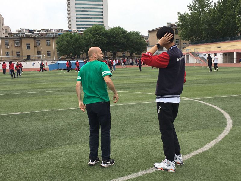 泰安一中外教教中美班学生学习橄榄球