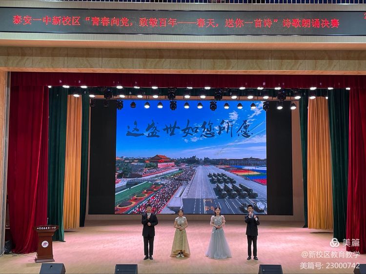 为弘扬中华民族源远流长的传统文化,进一步丰富校园文化生活,陶冶同学们的情操,引导同学们朗诵诗文、致敬经典,彰显青春力量,致敬百年伟业,泰安一中新校区举办了“春天,送你一首诗”朗诵大赛。