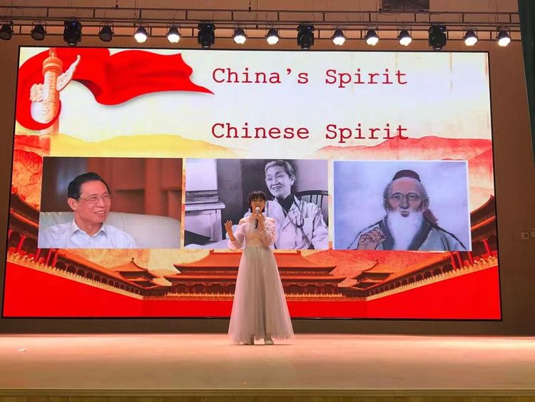 27位选手用自己深刻的理解生动诠释了中国文化,中国精神。同学们的热情也激励着老师们,在比赛最后环节英语组老师们进行即兴诗朗诵,表达她们对于祖国的热爱。