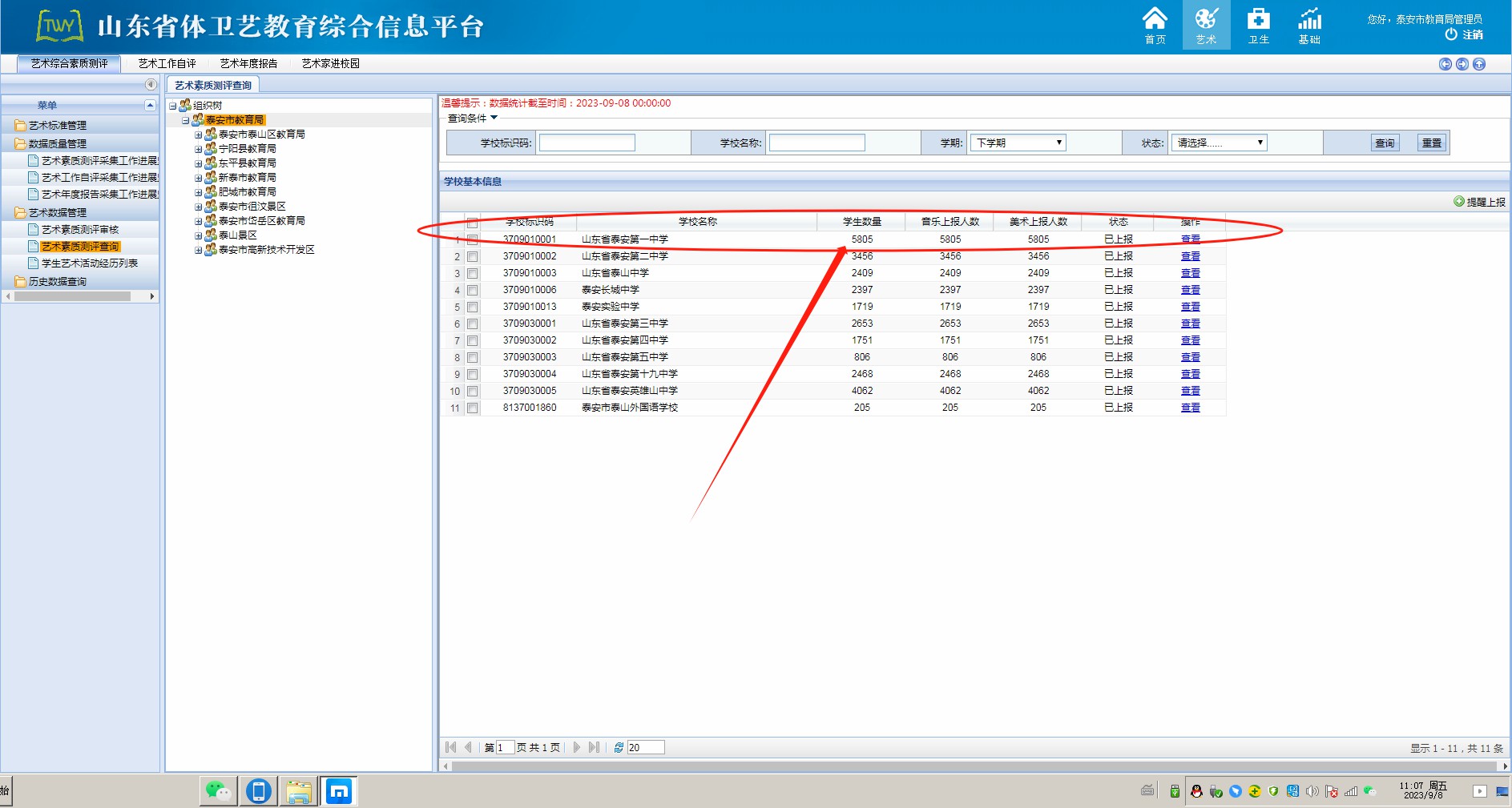 【美育评价】泰安一中2023年度艺术测评上报情况
