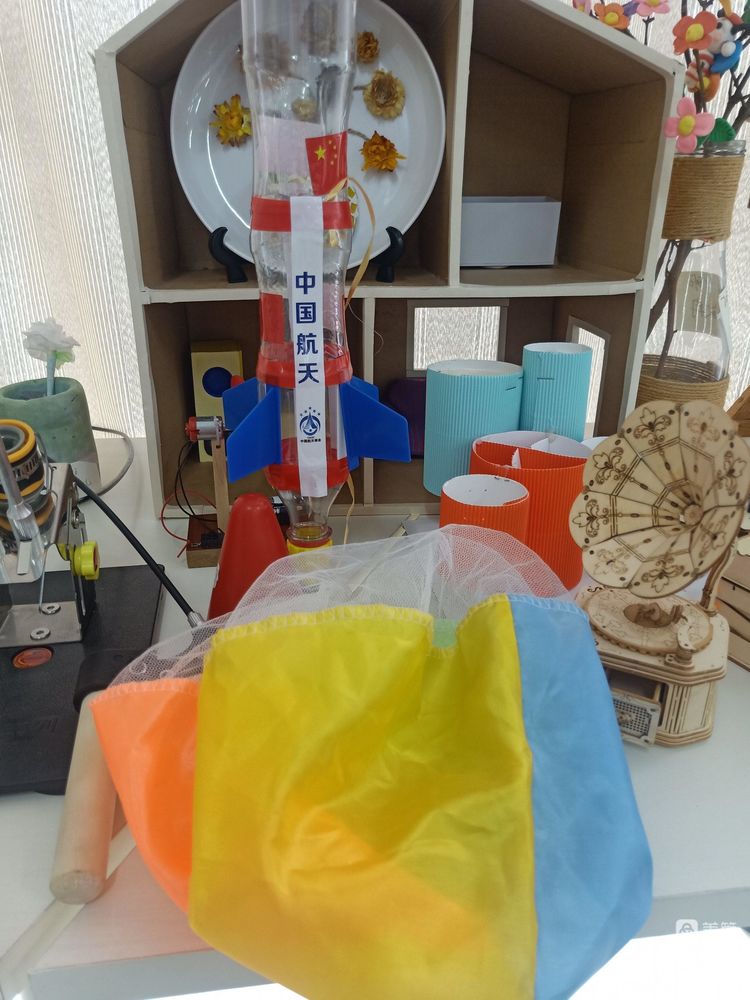 有降落伞的火箭模型